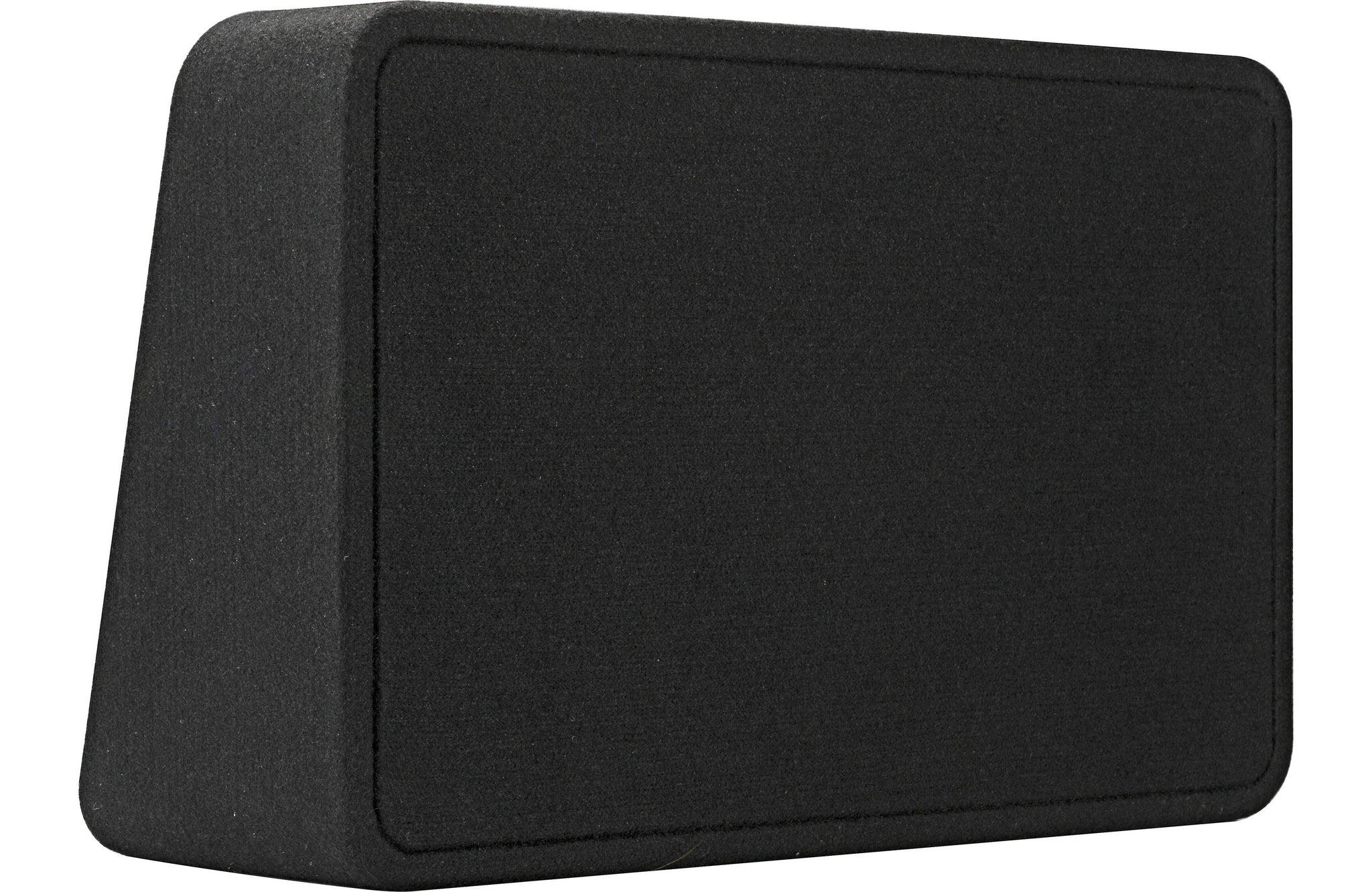 The rugged sealed box is specially designed to bring out maximum performance from the speaker while taking up minimal space and allowing easy installation. The enclosure's sealed design keeps the bass punchy and accurate, and the sturdy medium-density fiberboard construction and tough black carpet covering protect the sub from damage while looking sharp. Kicker's legendary quality and innovative design deliver enormous low end in a surprisingly compact package.