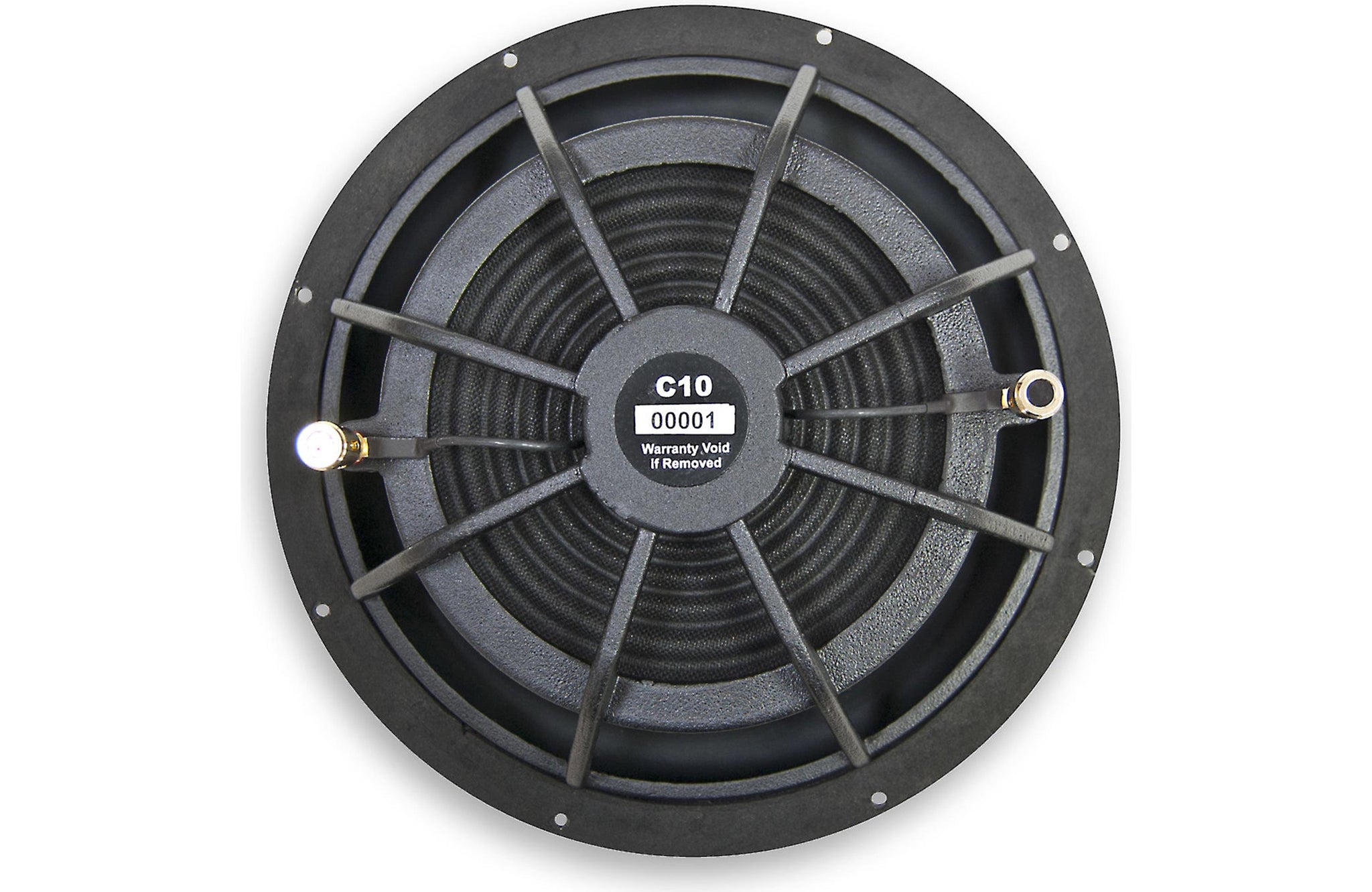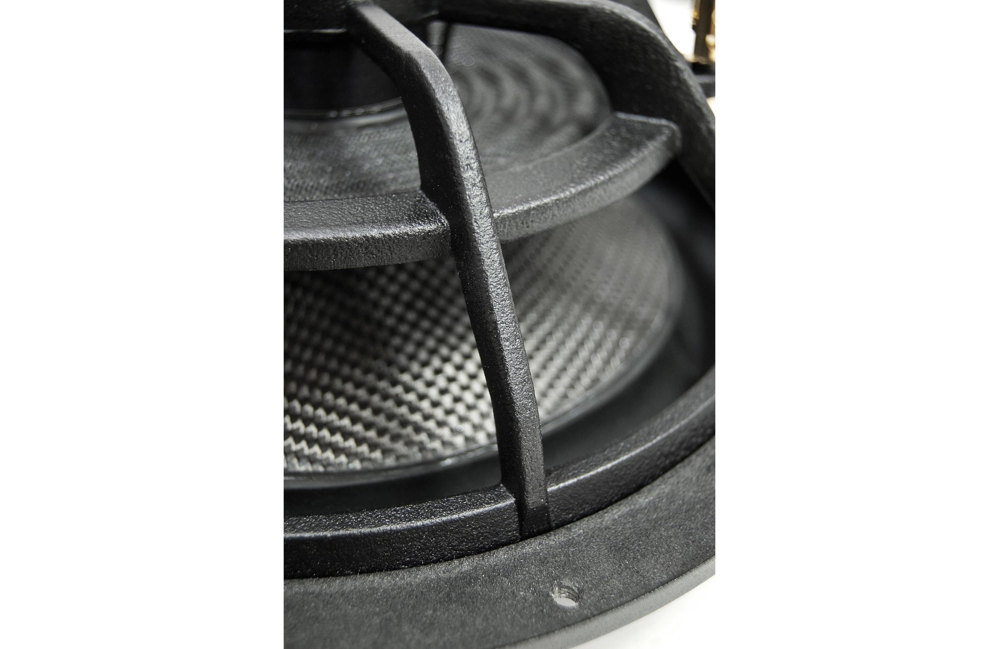 The C10's woven carbon fiber cone is reinforced with a high-damping epoxy resin for the ideal combination of low weight and stiffness to reproduce strong, clear bass. The cone's rubber surround keeps things on track, while the cast aluminum basket with its striking black powdercoat finish holds everything together, providing the necessary stability for great bass.