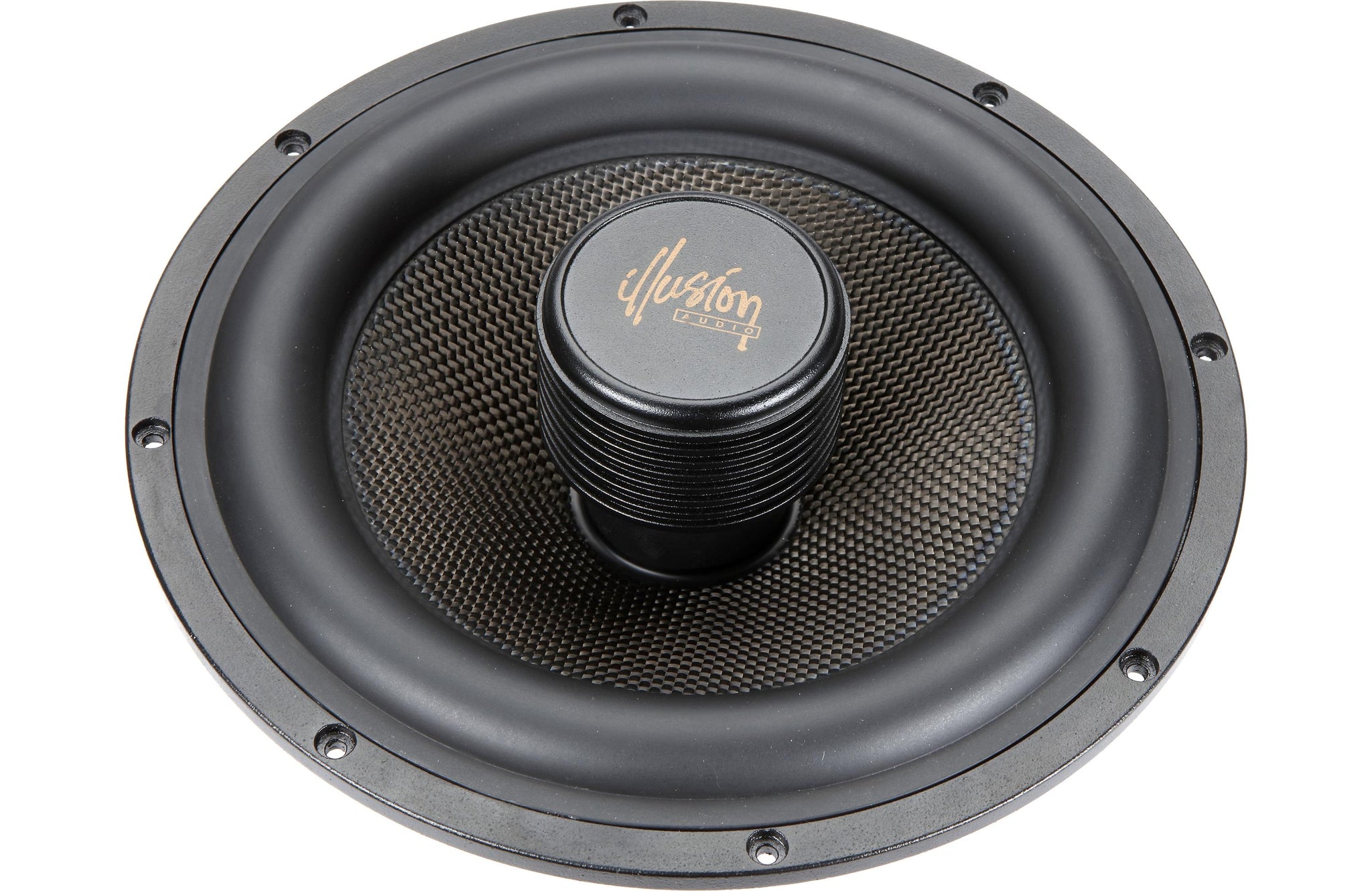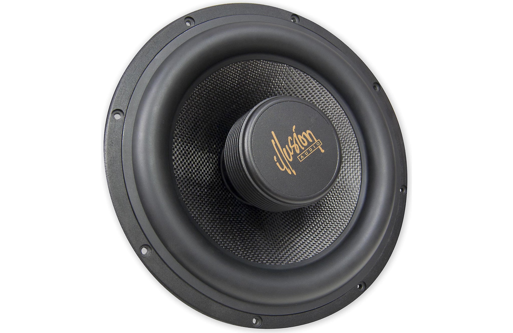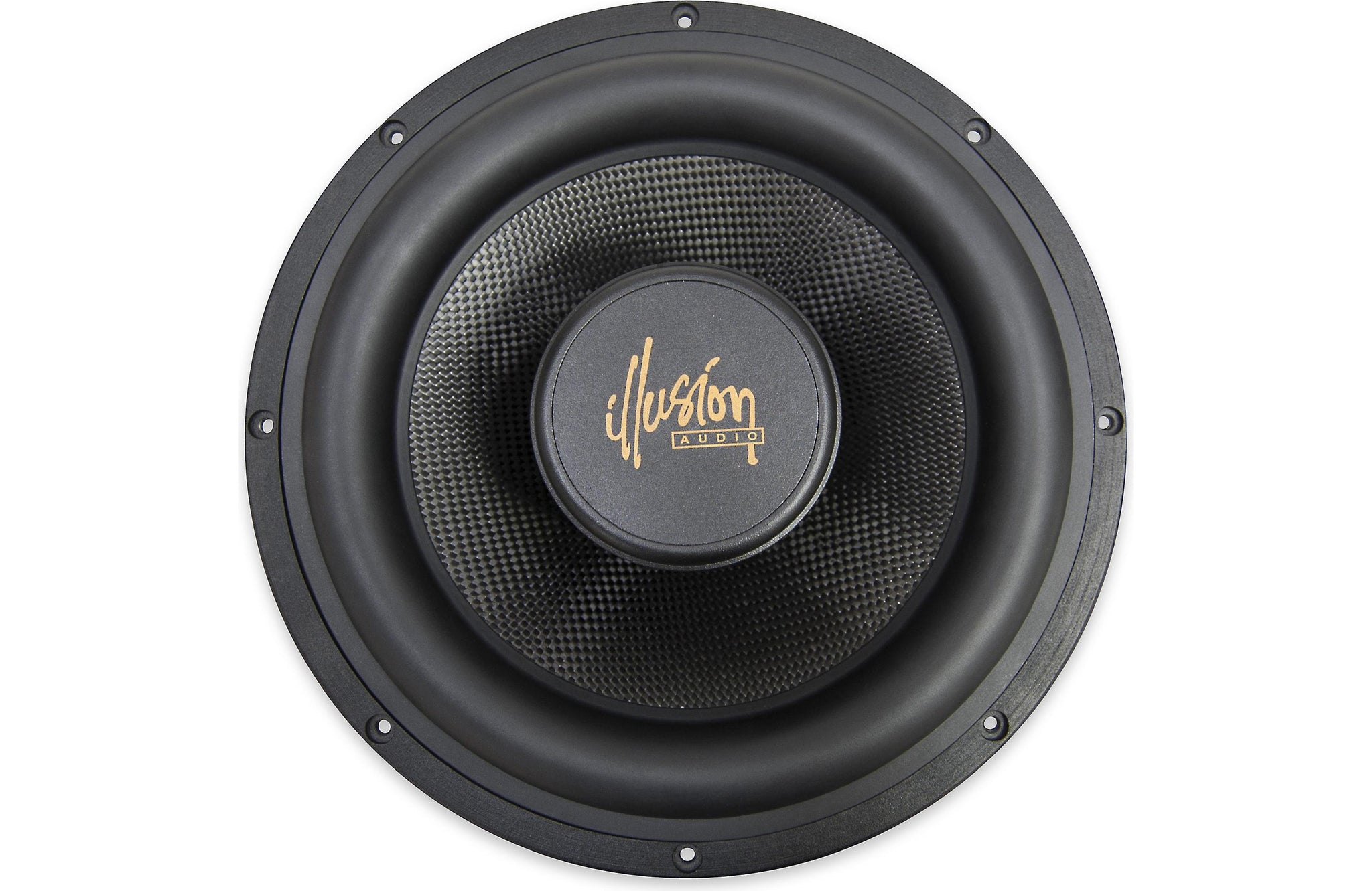 When it comes to great bass, Illusion Audio does things a little differently. Their Carbon C10 10" subwoofer features a magnetic motor that's mounted in front of the cone, unlike the rear-mount magnet in most subs. Why go to all this trouble? For one thing, the woofer is shallower, making it easier to fit in smaller spaces. And, because the motor releases heat from the front of the speaker, you don't have the problem of heat buildup inside of the sub's enclosure. The motor's heat sink fins help keep things even cooler, while the speaker's unique design allows extended cone travel with very low distortion.
