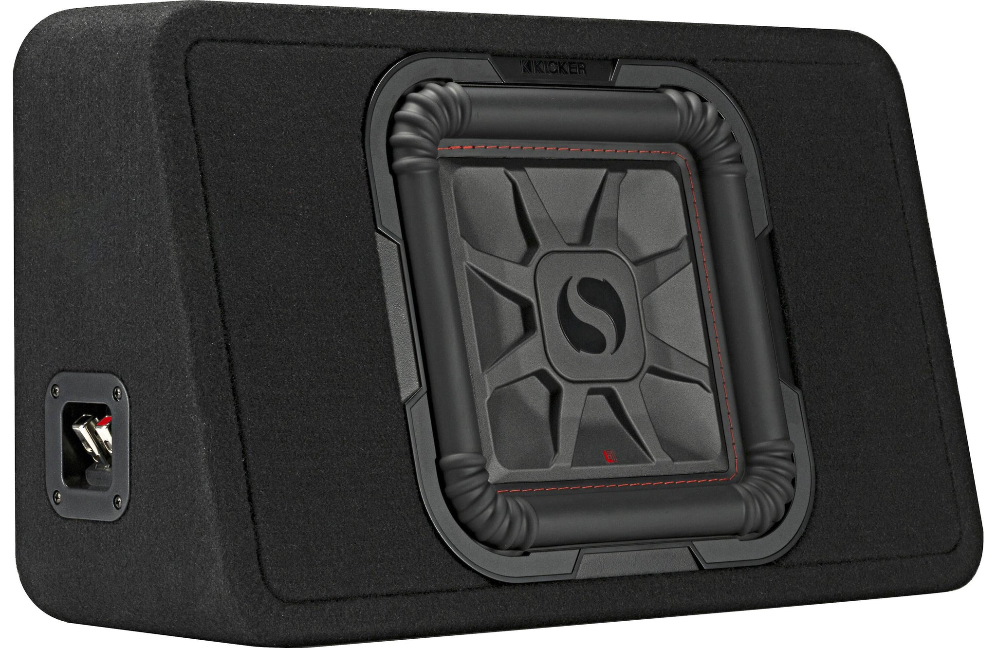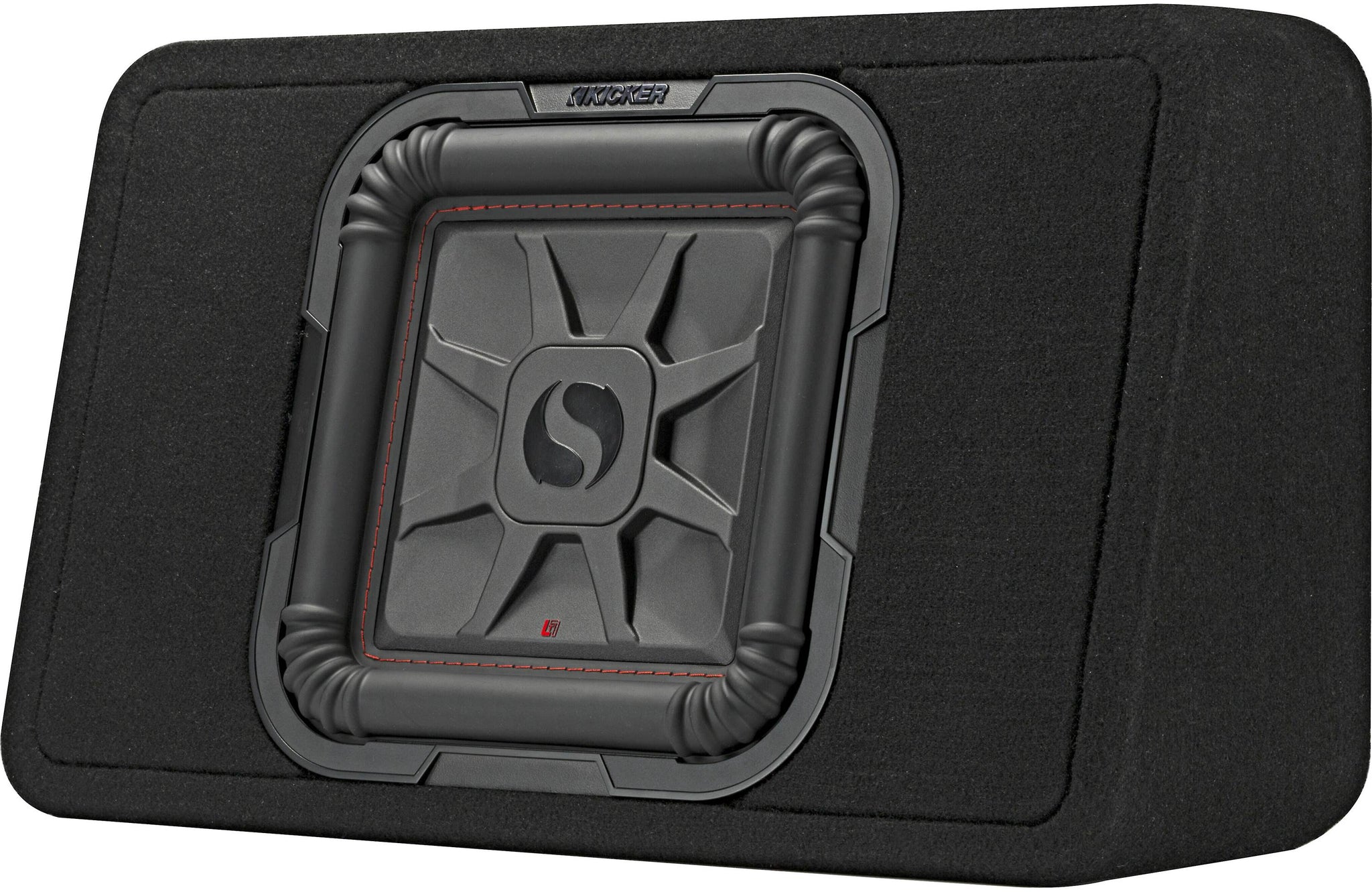 Kicker's TL7T102 loaded enclosure brings the spectacular performance of their unique L7 square subwoofer design to smaller spaces than ever before. At only 7-1/4" deep, this box gives you the punch and high power-handling of a 10" speaker in a package that fits behind many truck seats.