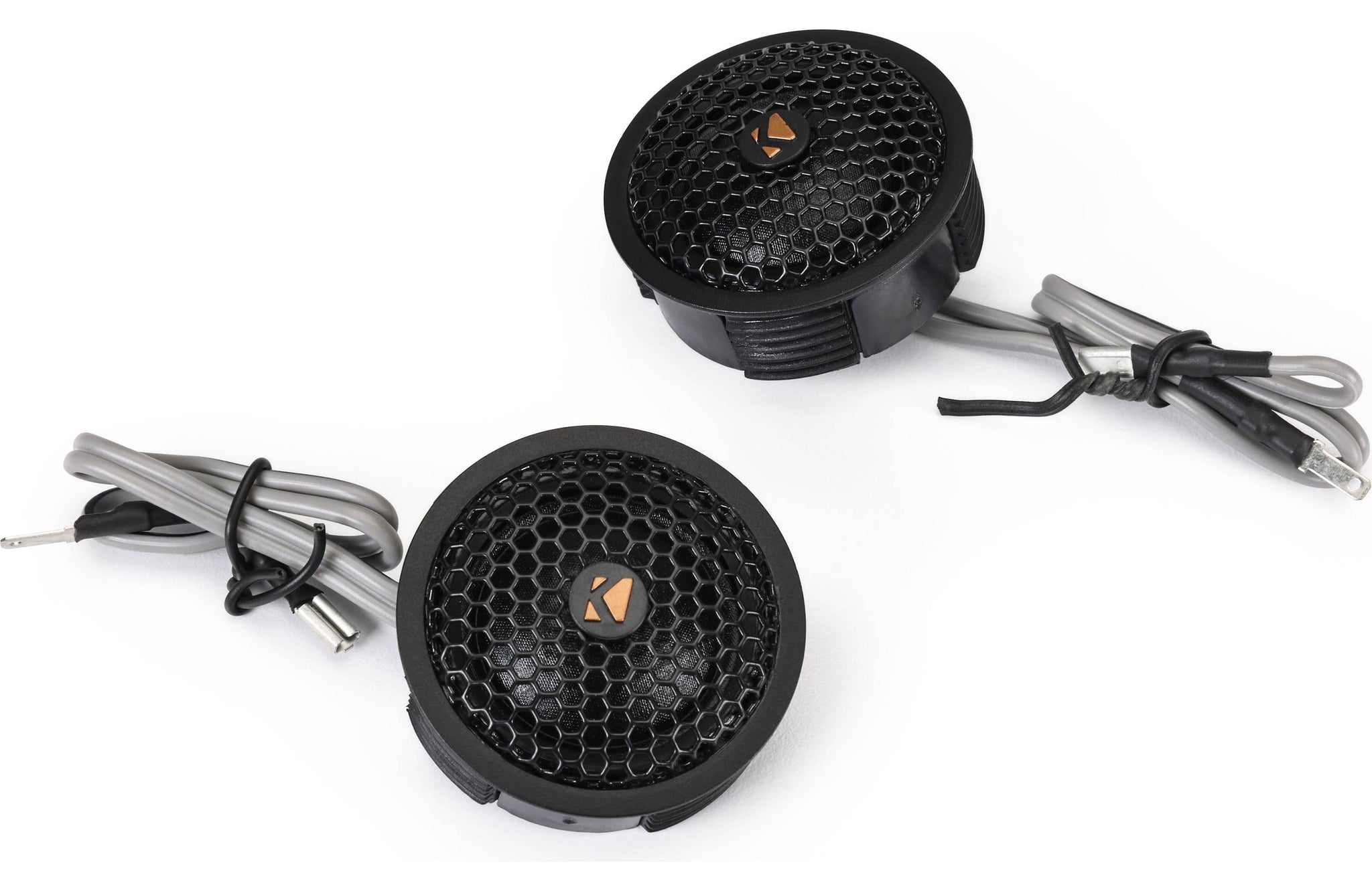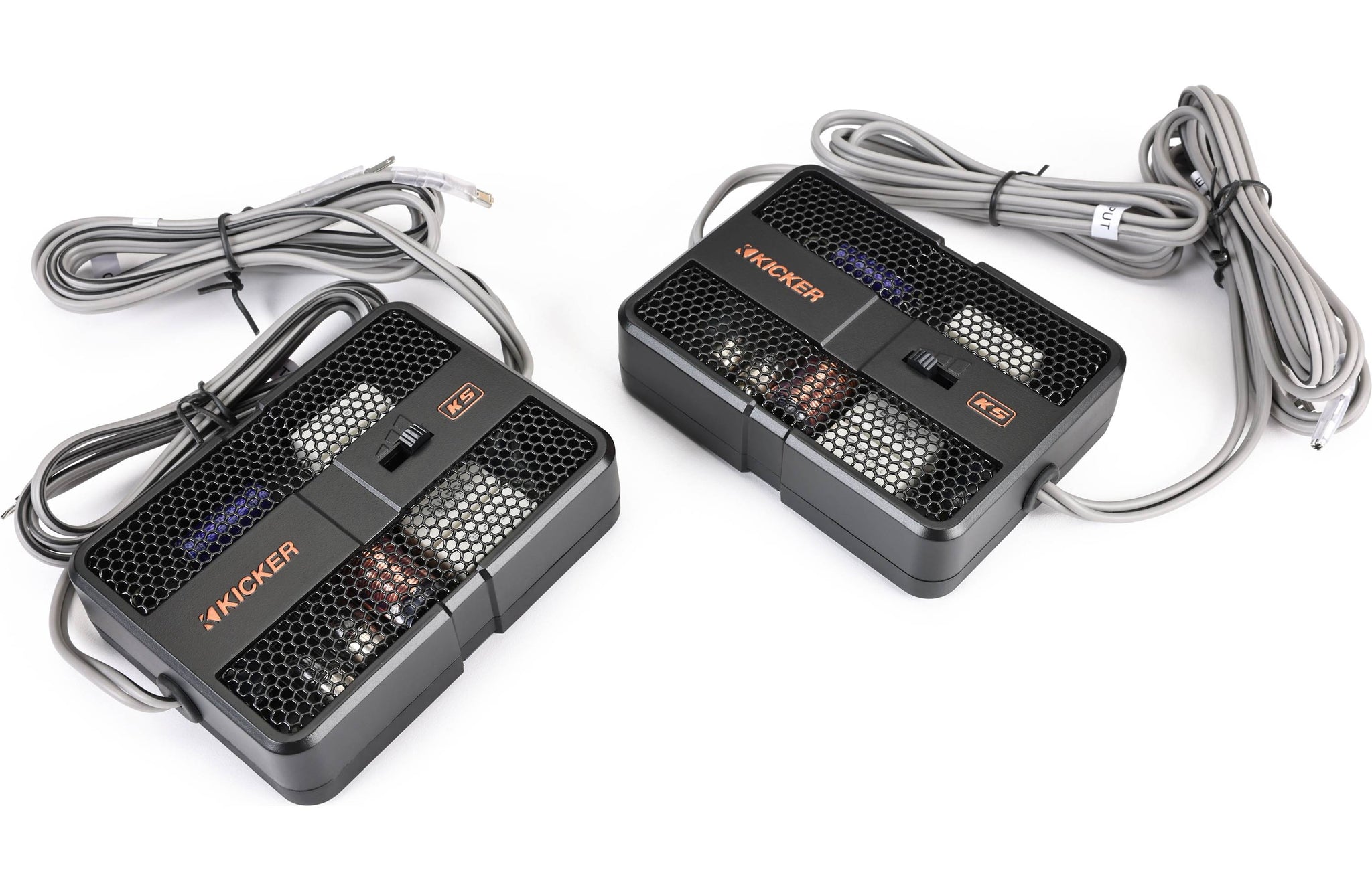 Kicker designed their KS Series lineup to be a substantial step-up from your factory speakers. The KSS50 5-1/4" component system features two woofers for satisfying bass and a pair of silk dome tweeters that deliver smooth vocal and instrumental details. This system's outboard crossovers direct frequencies where they need to go and let you tweak the tweeter levels depending on your taste. What does that all mean for you? You'll finally hear what most factory speakers don't provide — a full spectrum of natural sound.