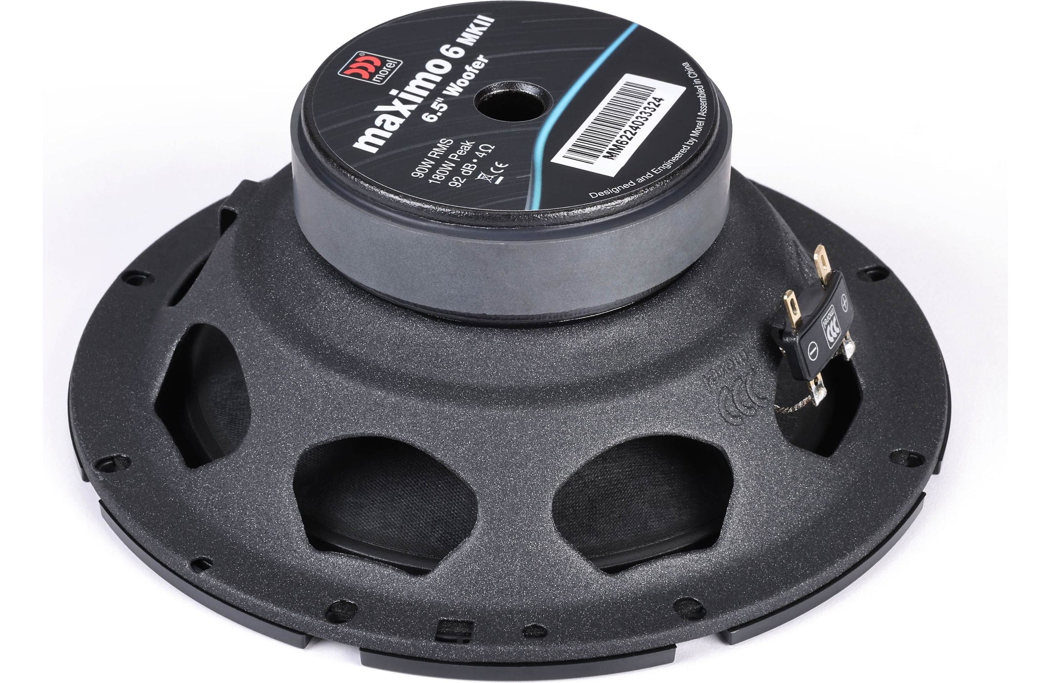 This Morel Maximo 6 MK II component speaker system's treated 6-1/2" paper composite woofer and a separate 1" soft dome tweeter delivers impressive full-range sound. This efficient system will respond well when driven by a factory radio, but it'll handle up to 90 watts RMS, so you'll get the best performance by powering them with an aftermarket amplifier. The crossover sends the highs to the tweeters, and because they're inline, you won't have to mount a separate piece of gear. Morel also includes mounting solutions for ideal tweeter placement.