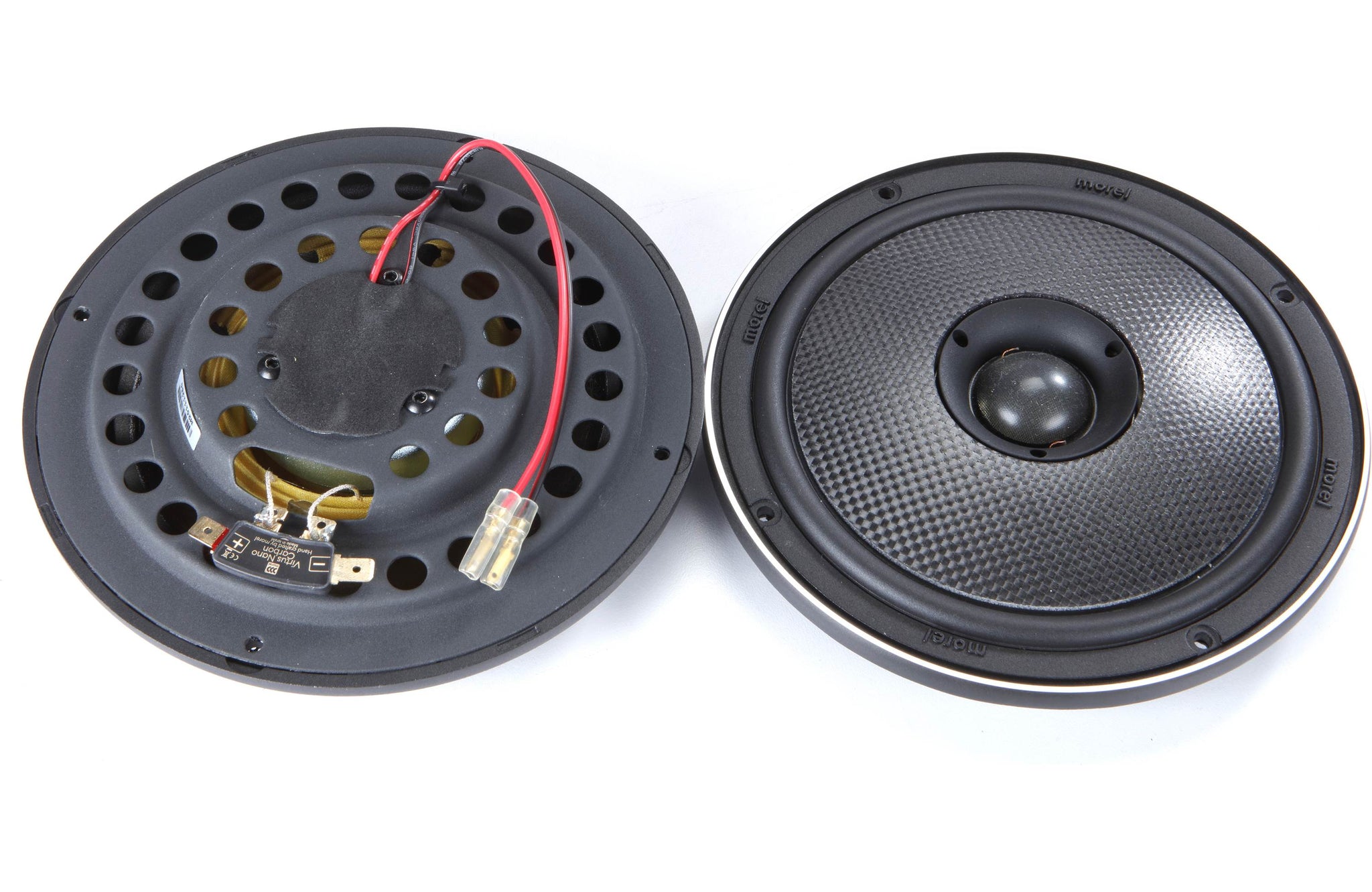 The time has come to upgrade the audio in your classic or custom car, and Morel has the eye-popping solution. The Virtus Nano 62 Carbon Integra 2-way speaker provides hi-fi performance like no other speaker can. The key player here is the famous Virtus Nano woofer, which rocks a mounting depth of only 11/16". Morel then incorporates a 1-1/8" silk dome tweeter deep in the center of the woofer. What you get is an extremely versatile speaker that's convenient to install and gives you awesome full-range sound.